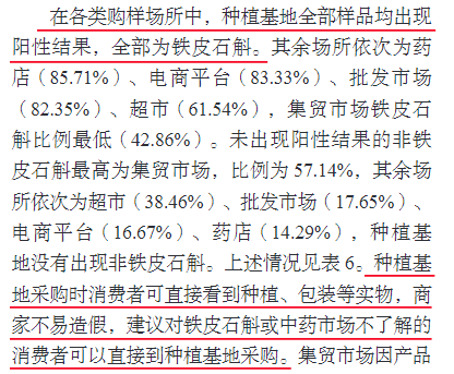 由此看來,大家最喜歡逛的超市和集市,是鐵皮石斛混偽品的重災(zāi)區(qū)!如果你無法辨別鐵皮石斛真假,直接去種植基地購(gòu)買是最有保障的。